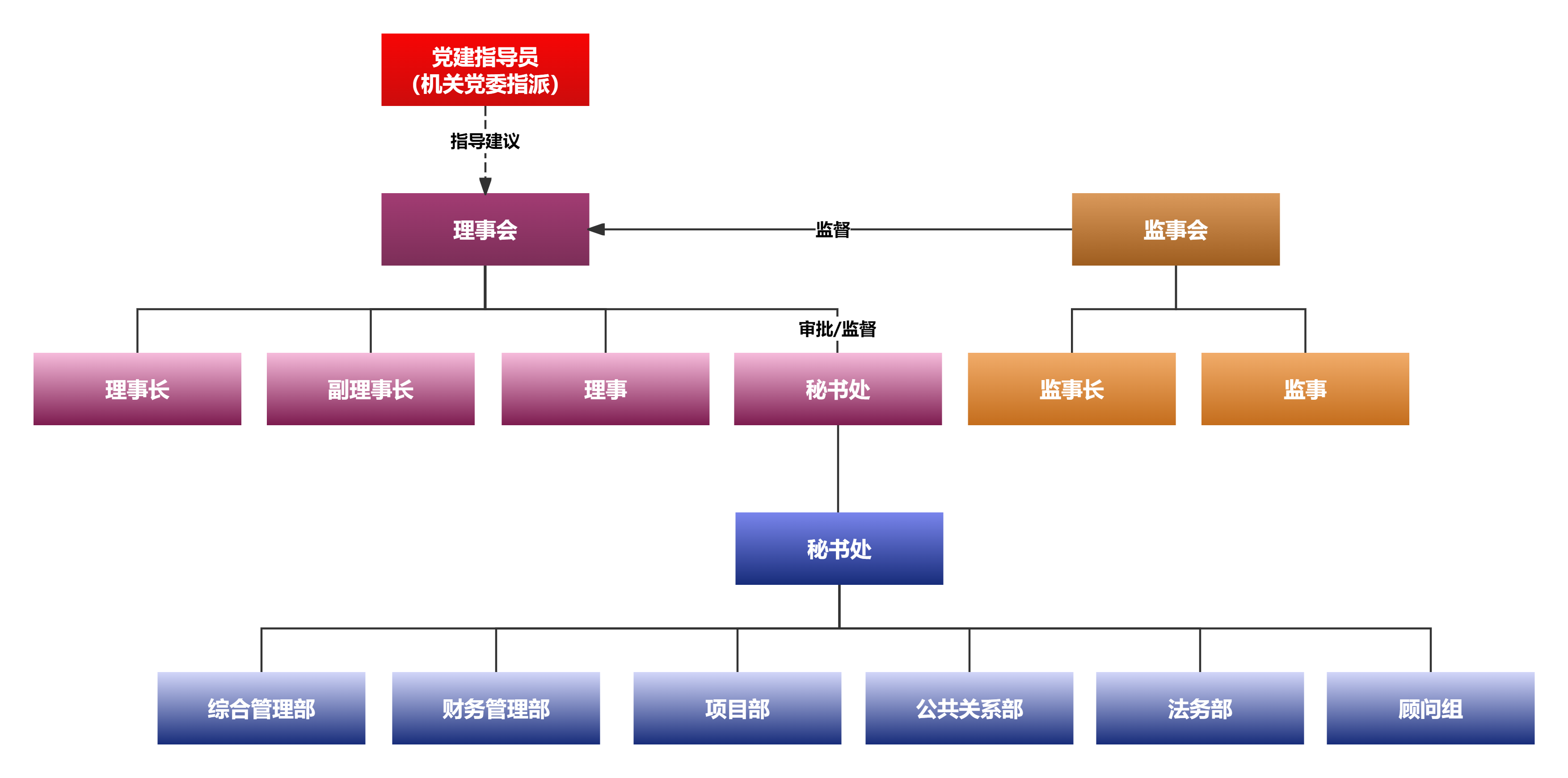理事会:统筹基金会全部工作安排及对部分岗位的提名选任。